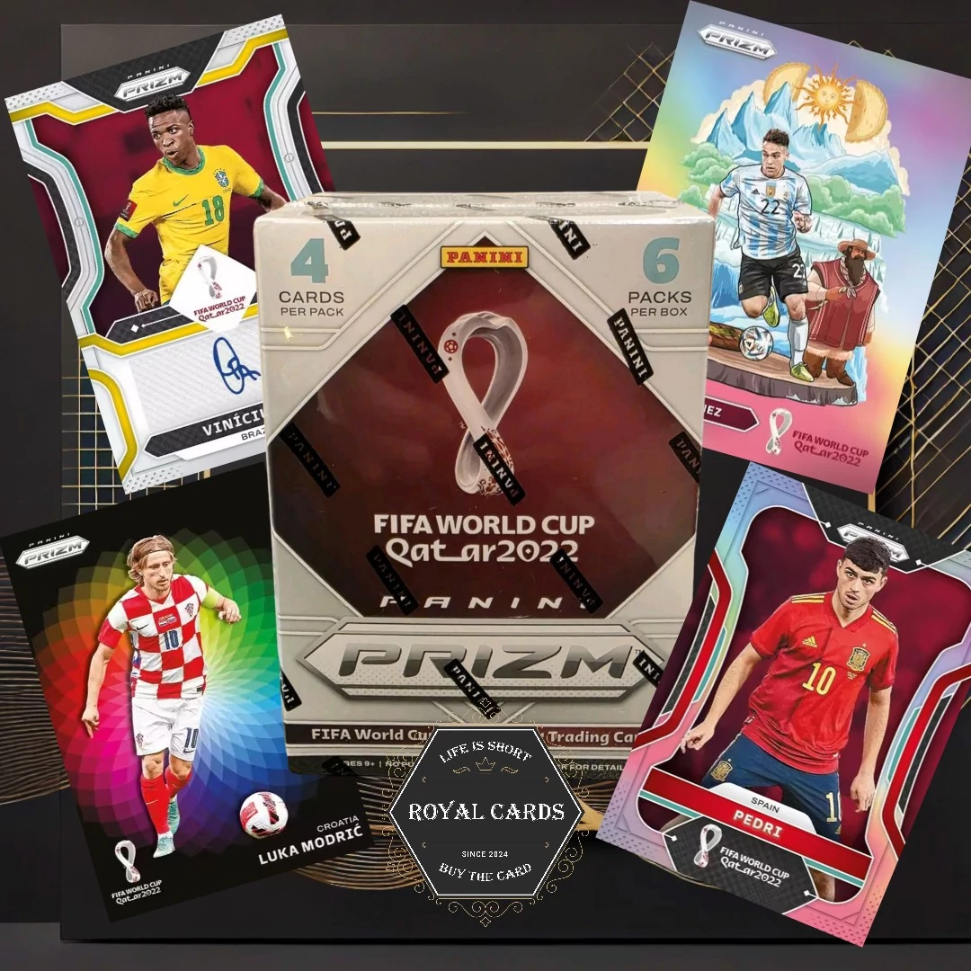 A 2022 Panini Prizm FIFA World Cup Qatar 2022 Blaster Box minden bizonnyal a 2022-es év legizgalmasabb terméke köszönhetően az elképesztően jól kinéző különböző SP (Short Print) és SSP (Super Short Print) kártyáknak, mint amilyenek a Color Wheel, a Manga és a National Landmarks kártyák. Ezek mellett ez a VB a világ történelem egyik legjobb játékosának, Lionel Messinek és ebből kifolyólag a kártyáinak is egy különleges év volt. A fent felsorolt inzertek mellett további gyönyörű inzerteket is kinyithatunk ebből a dobozból, mint amilyen mondjuk a New Era vagy a Global Reach inzertek, de akár szerencsével aláirt kártyát is bonthatunk olyan játékosoktól, mint Cristiano Ronaldo, Lionel Messi vagy akár Pelé! Ez a Blaster doboz összeségében 3 parallel kártyát (nem feltétlen számozott!!) és 3 inzert kártyát garantál dobozonként, illetve 24 kiváló minőségű focis kártyát! Hamár parallelek, akkor fontos megemliteni, hogy kiváló fiatal játékosok RC (az adott játékos első kártyája az adott gyártónál) kártyáit, akár számozott kártyáit is kinyithatjuk. Ilyen játékosok pl. Cody Gakpo, Gavi vagy Nuno Mendes!